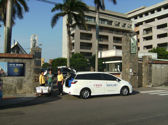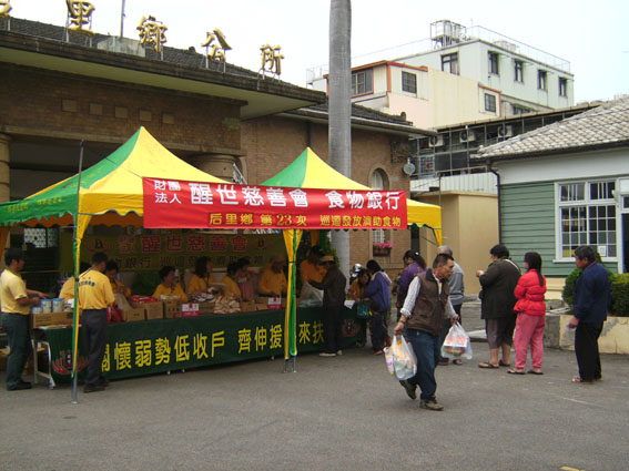 台灣 "醒世食物銀行"巡迴中區各鄉鎮市鄉發放濟助食物之一圖