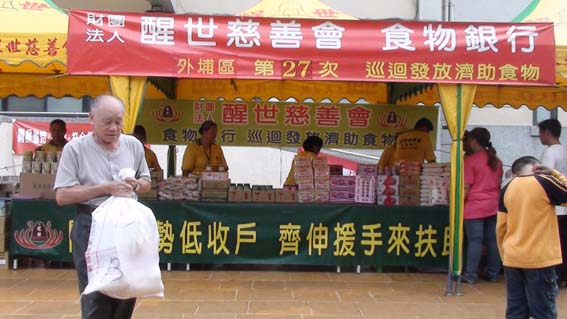 醒世慈善會"醒世食物銀行"每 3~4 個月定期巡迴中區發放濟助食物為貧困戶的生活節省開支