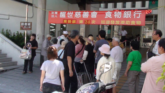 台灣"醒世食物銀行"巡迴中區各鄉鎮市發放濟助食物之一圖