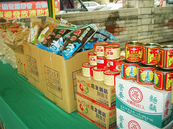 台灣 醒世慈善會"行動食物銀行"的多樣性食物...擺起來宛如一小雜貨舖